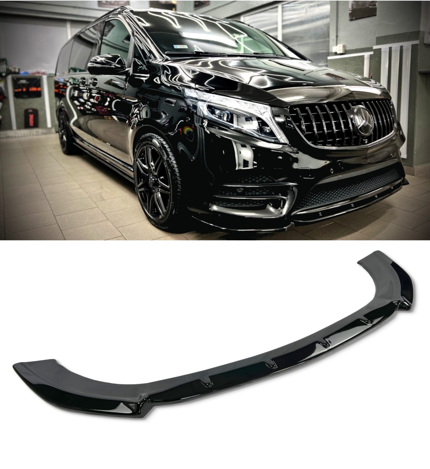 FRONT LIP SPLITTER GLOSS BLACK FOR MERCEDES V CLASS W447 FACELIFT AMG LINE 2019+